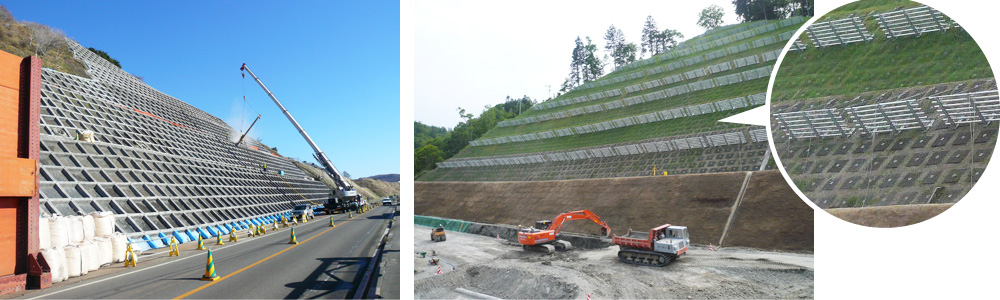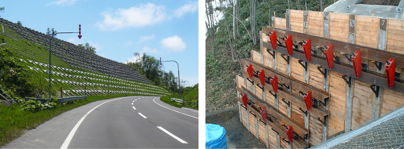 仮設土留め、擁壁、のり面・斜面安定対策ほか多くの用途に使用されています。